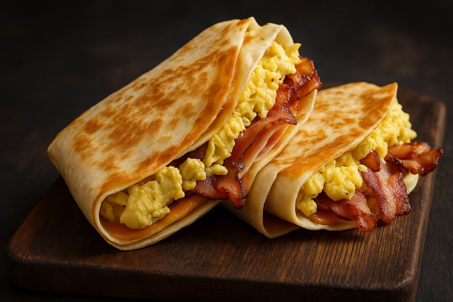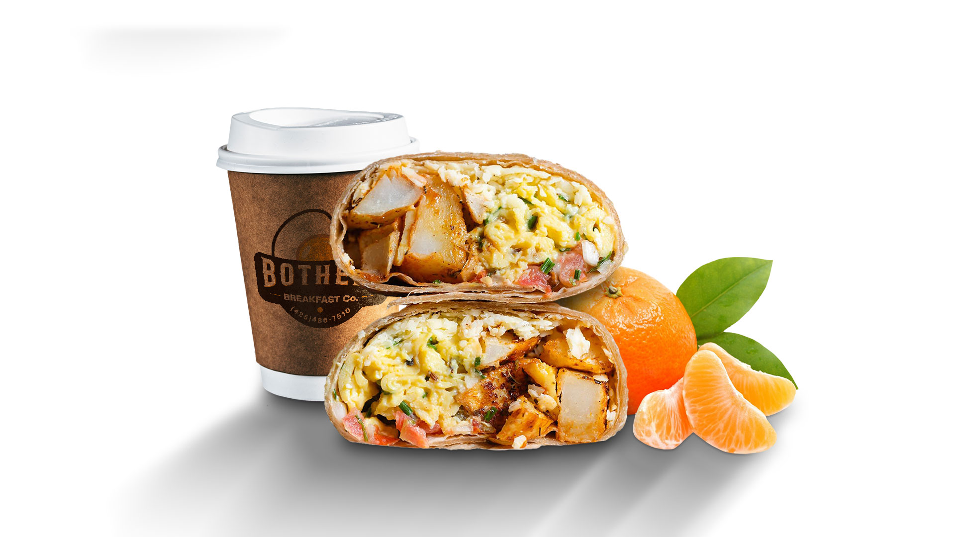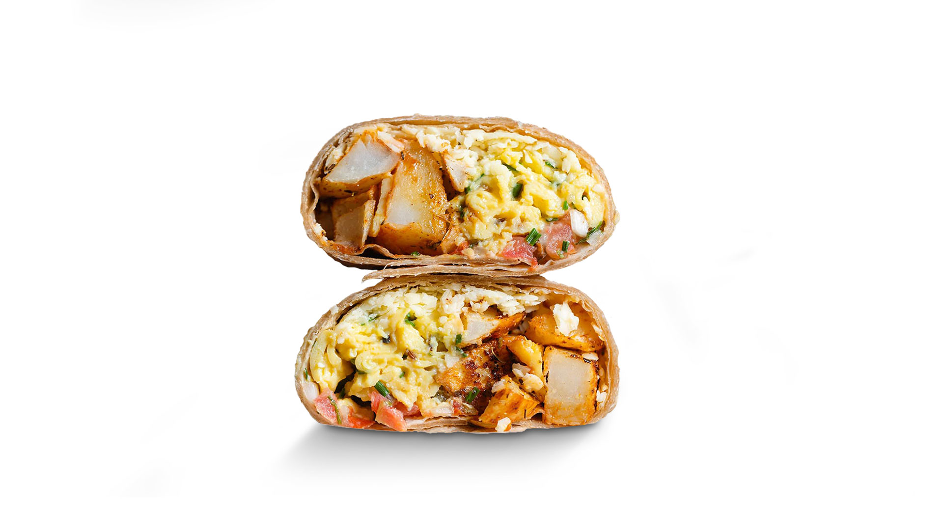 fillings: all wrapped in a warm tortilla, paired with hot coffee and fresh